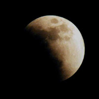 A little late-night family bonding time tonight. Yes, we are the goofy family who put on pajamas, climbed into the car, and went in search of a viewing spot for the lunar eclipse at 9 PM. ChellBell was completely amused by sticking her head out of the sunroof and informed us that she would like to be a Meteorologist when she grows up so she can work at a planetarium. (Really big words for a six year old, too bad it makes no sense). The clouds were heavy with only a few breaks, so we ended up back at home, watching the moon from our front yard. And rest well, because on the way home, ChellBell realized that the Meteorologist is not the one who watches the stars. She is now going to be an Astrologer when she grows up. I personally am fascinated by planetal movement (ah, see where she gets the big words...). The thought of the earth blocking the sun from shining on the moon -- something it does night after night after night -- is riveting. Kind of creepy. Kind of cool. Kind of captivating.